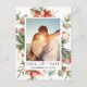 Elegant Red Poinsettia Pine Wedding Save the Date Postcard