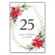 Elegant Red Poinsettia Winter Greenery Wedding Table Number