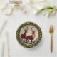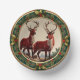 Elegant Red Reindeer Moose Gold Holly merry Xmas Paper Plate