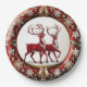 Elegant Red Reindeer Moose Gold snow merry Xmas Paper Plate