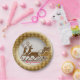 Elegant Red Reindeer Sled Gold Snow merry Xmas Paper Plate
