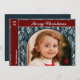 Elegant Red Ribbon Modern One Photo Christmas Holiday Card