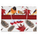 Elegant and beautiful winter pattern featuring watercolor birds, snowy pinecones, frozen red leaves and snowy wintercherries with a red ribbon in the middle.