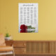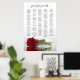 This gorgeous wedding seating chart features a photo of a long stemmed red rose lying on its side reflecting in a pool of water with waves and ripples. The title reads "please find your table" in elegant lacy script calligraphy. There is space for the up to 250 names with the names of the couple and wedding date below. Wonderful way to help your guests find their tables while making your reception more beautiful.