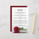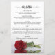 These beautiful wedding menus are simple, elegant, and stylish while still being budget friendly and affordable. They feature a classy and glamourous design with a script calligraphy title and a single red rose reflecting in a pool of water with waves and ripples. The back is a beautiful marbled red colour with the names of the couple and wedding date at the bottom.