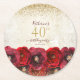 Elegant Red Rose Floral Gold 40th Birthday Party Round Paper Coaster