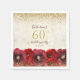 Elegant Red Rose Floral Gold 60th Birthday Party Napkin