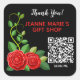 Elegant Red Rose Flower Thank You QR Code Square Sticker