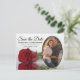 Elegant Red Rose Oval Photo Wedding Save The Date Announcement Postcard