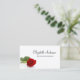 Offer your professional services as a wedding photographer with these elegant business cards with a single long stemmed red rose resting on satin against a white background.