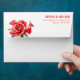 This elegant wedding envelope features a stunning bouquet of red roses on the left, with rich gradients from deep crimson to soft pink hues, creating a romantic and sophisticated look. The right side is adorned with clear, legible typography in a classic serif font for names and a sans-serif style for addresses, ensuring a refined and timeless appeal. The design's high contrast against a solid background highlights the vibrant colors and detailed petal textures, making it perfect for formal occasions. Its asymmetrical layout adds a touch of modern elegance, ideal for couples seeking an intimate yet stylish presentation for their special day.