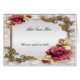 Pretty red roses and gold leaf pattern frame. Let your guests know where they are to be seated with this pretty place card. Personalize the card by changing the text in the fields provided front and back. You can change font style, size, color, as well as paper type and style.