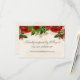 This elegant RSVP card features a romantic arrangement of deep red roses, green foliage, and delicate gold lace accents to perfectly match Ashley and Christopher’s wedding invitation. With classic script typography and a timeless cream background, it kindly invites guests to reply via the couple’s wedding website. A beautiful and convenient way to keep your wedding suite cohesive while guiding guests online for responses.