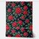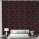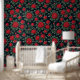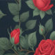 A seamless floral pattern featuring vibrant red roses in full bloom, surrounded by lush green leaves. Set against a deep black background, the striking contrast enhances the elegance and romance of the design, making it perfect for textiles, wallpapers, or decorative prints.