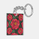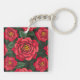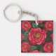 Elegant Red Roses with Lush Green Leaves Pattern Key Ring