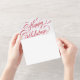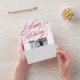 This unique holiday photo card design features a classic white background with a beautiful calligraphy script greeting in red with two photos. The inside of the card accommodates text and two photos, one large and one small horizontal photos. On the outside of the card is your return address. The photo is torn away and can be kept as a keepsake! Also, there is need to order envelopes - the outside of the card serves as an envelope!