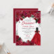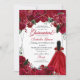 Elegant Red & Silver Floral Quinceanera Birthday Invitation