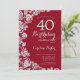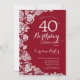 Elegant Red Silver Roses 40th Birthday Party Invitation