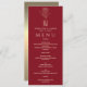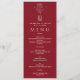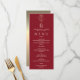 Simple, elegant, modern, minimalist burgundy red wedding menu with unique gold rose flower monogram at the top. Perfect choice for classy, chic, contemporary weddings
