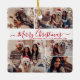 Elegant Red White 5 Photo Collage Christmas Ceramic Ornament