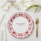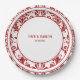 Elegant Red & White Floral Damask Wedding Dinner Paper Plate