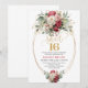 Elegant Red White Greenery Sweet Sixteen Birthday Invitation