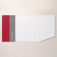 Elegant Red White Grey Stripes Script Monogram Bath Towel Set