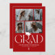 Announce your graduate’s milestone in timeless, sophisticated style with this elegant red and white graduation announcement card. Featuring a trendy red background, the design highlights the word “GRAD” in a modern serif typeface, accented with a stylish graduation cap icon above the “R.” The flowing tail of the “R” transitions into a sleek tassel that connects the graduate’s name, school, and class year, creating a cohesive and high-end finish.
