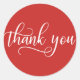 Elegant RED White Script Calligraphy Thank You Classic Round Sticker