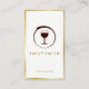 Elegant Red Wine Stain Wine Glass Faux Gold Border Business Card