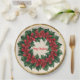 Elegant Red Wreath Holly Berries Christmas Gold me Paper Plate