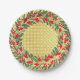 Elegant Red Wreath Holly Berries Christmas Gold Paper Plate