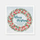 Elegant Red Wreath Holly Berries Gold merry Xmas Napkin