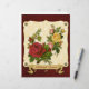 Beautiful vintage red, yellow and peach Hybrid Tea roses with green leaves, over a background of light yellow damask paper texture, vintage metallic gold studs, and deep red, felt-like striped fabric paper texture. A matching gold banner ribbon for adding your names or other text awaits your customisation. Enjoy the deep red and gold tones of this elegant, timeless design that's perfect for Mother's Day, birthdays, garden parties, housewarming, retirement, get-well-soon and other occasions regardless of the season.