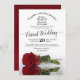 This beautiful invitation is designed for couples who have decided to take their weddings online due to the ongoing pandemic. It features a gorgeous design with lacy script calligraphy a single long stemmed red rose reflecting in a pool of water. Wonderful way to invite your friends and family to share in your special day, even if circumstances prevent a physical gathering.