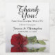 These beautiful wine bottle labels are the perfect addition to your wedding celebration. The design features a single long stemmed red rose reflecting in a pool of water with ripples and waves. The caption reads: Thank you for celebrating with us. There is space for the wedding couple's names, the wedding date, and the type of wine or other bottle contents.