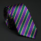 This eye-catching necktie features sharp diagonal stripes in vibrant purple, deep emerald green, and thin shimmering gold lines. The bold colour combination creates a confident, luxurious, and modern look that stands out in the best way. Perfect for weddings, formal events, fraternity or school colours, or adding personality to your business attire. The rich purple and green with gold accents pair beautifully with white, black, navy, or grey shirts and suits. Whether you're the groom, a groomsman, or simply a man who loves classic striped ties with a fresh, energetic twist, this purple green gold striped tie brings style, energy, and sophisticated flair.