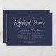 Elegant and modern silver handwritten script Rehearsal Dinner Invitations and Navy Blue, a DIY background colour.