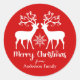Elegant Reindeers Merry Christmas Family Name Red Classic Round Sticker