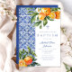 Elegant Religious Cross Blue Tiles Baptism Invitation