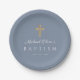 Elegant Religious Cross Dusty Blue Boy Baptism Paper Plate