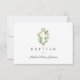 Personalised Elegant Religious Cross Green Botanical Baptism RSVP Card.