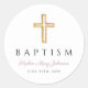 Elegant Religious Cross Pink Script Girl Baptism Classic Round Sticker