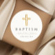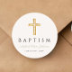 Elegant Religious Cross Sage Green Script Baptism Classic Round Sticker