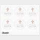 Personalised Elegant Religious Pink Floral Cross Baptism Classic Round Sticker.