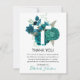 An extra special funeral thank you card to either hand out at the service or send to friends and family who have shown you love and support during your time of grief. Featuring a white holy cross adorned with a beautiful bouquet of turquoise flowers and foliage, and a thank you note which can be easily personalised. On the reverse you can upload a photo of your loved one with the title 'in loving memory', their name, years of living and a custom tribute. This also makes a wonderful keepsake.