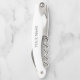 Elegant Happy Retirement gift personalised bottle opener with knife. Custom corkscrew opener for wine and beer bottles. Includes folding foil cutter knife and cap opener too. Handy foldable pocket size opener with personalised name or message. Stylish script typography template. Create unique gift and party favour ideas for friends and family. Fun drinking presents for him and her. Also nice as corporate business Holiday gift with company name. Change quantity to get the cheap bulk price. Upload your own unique logo optionally. Great for employee, coworker, friend, husband, wife, wedding couple, boss, personnel, retired person, retiree, pensioner, retiring dad or mum, uncle, aunt etc.