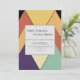 This modern wedding invitation is perfect for the couple that wants to make a stylish statement. The invitation features bold retro calligraphy on a white rectangle with a vibrant and groovy abstract geometric background. The artistic combination of old and new gives any event an inviting and unique touch. Whether you’re planning a simple gathering or a big celebration, this invitation will make sure your guests know it’s an occasion to remember.