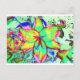 Elegant retro boho abstract green pink floral postcard
