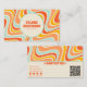 Colourful and fun with details and colours that make your business catchy and different. A Vintage retro Psychedelic colourful wavy lines square business card. That features a handmade groovy boho abstract wavy lines With blue and orange and beige cream colours. It has nostalgic seventies and sixties vibes and colours and groovy fonts. With customisable name and profession and social media . Perfect for a small business branding.